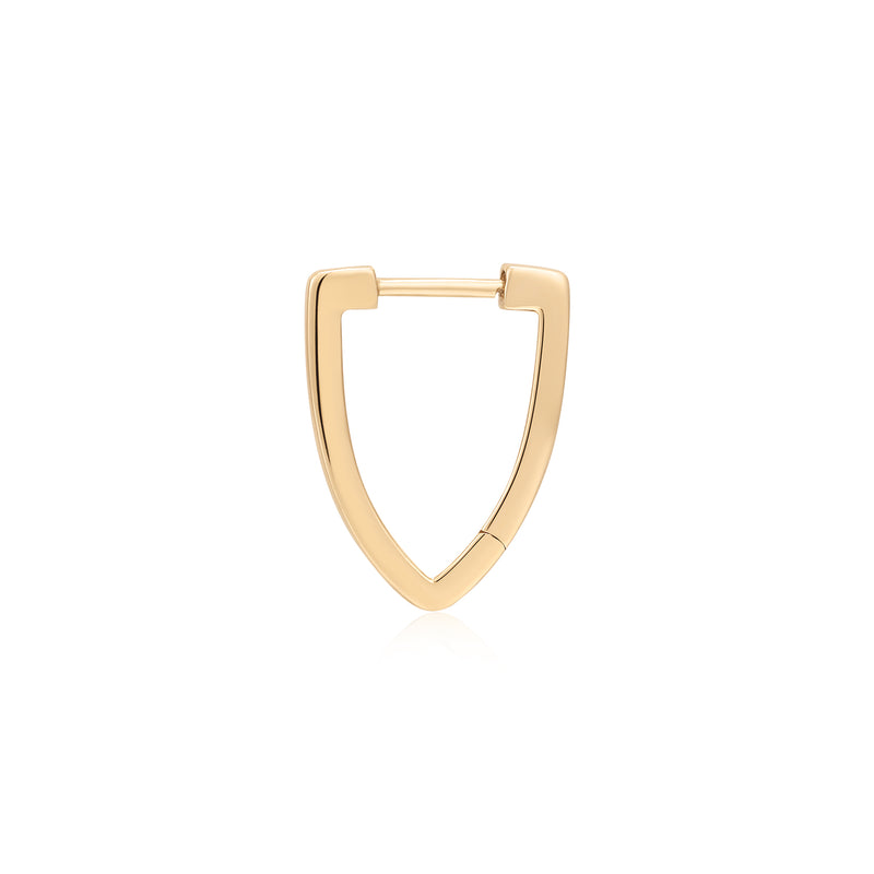 The Amal huggie in sleek 14 kt yellow gold offers a minimalist, modern design with a smooth, flat profile. This stylish and versatile piece adds a subtle touch of elegance, perfect for everyday wear or stacking with other earrings.