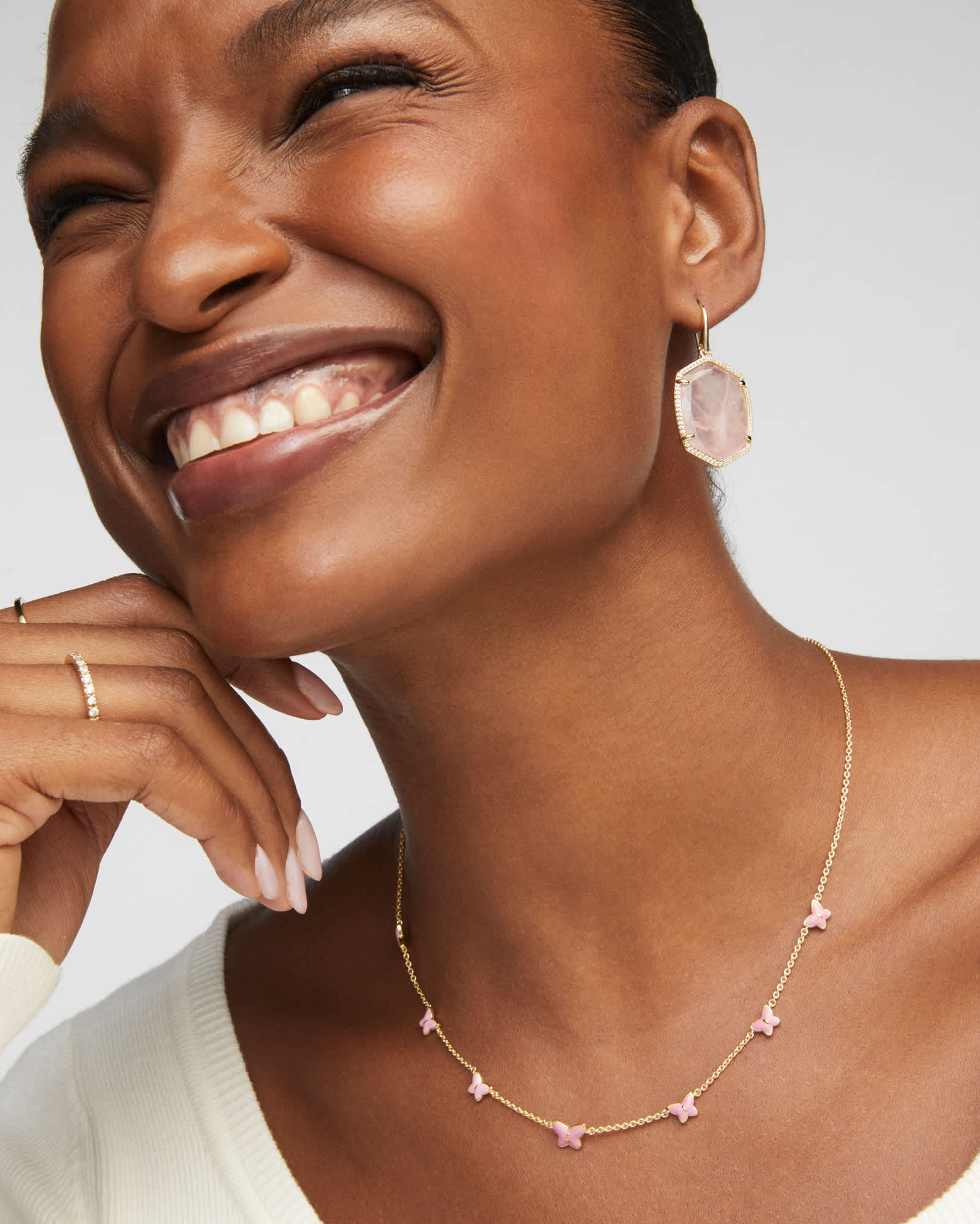 Add a sweet bit of shine to your necklace collection with the Lillia Butterfly Gold Enamel Strand Necklace. Featuring butterfly accents on a dainty chain, this choker-style necklace pairs perfectly with your other layers or can fly on its own.