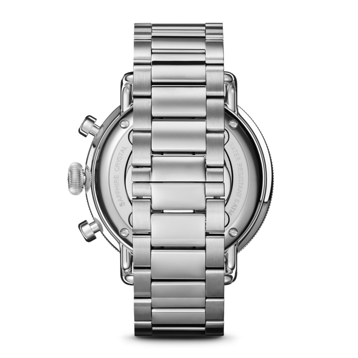 Built using top loaded case construction, the Canfield Chronograph features an open dark olive dial that showcases refined minute track and slim, diamond-cut hands. Finished with stainless steel case and bracelet, this is sophistication achieved through simplicity.